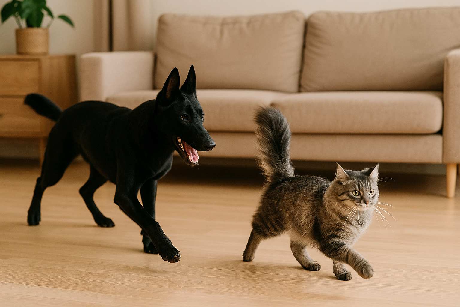 • Don’t allow the dog to chase the cat for play, even if the dog seems “just playing.” Prey-drive can take over quickly.